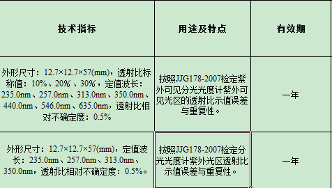 > 紫外可見光區透射比標準物質GBW(E)130314
